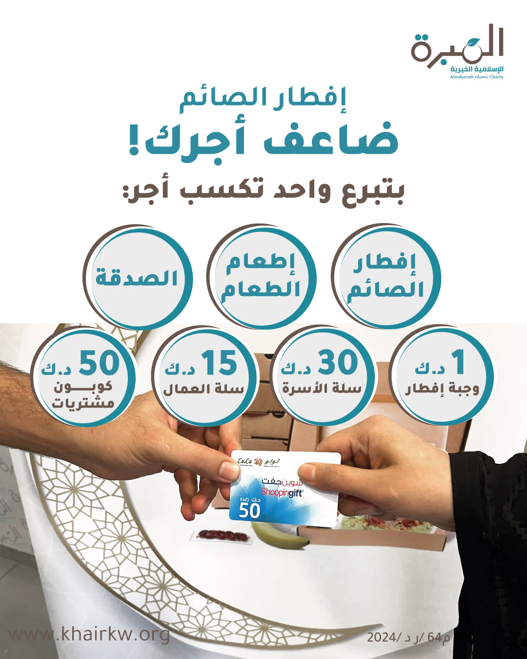 رمضان شهر الخير والعطاء، ادعم مشروع إفطار الصائم لتجعله فرصة للإحسان والرحمة.